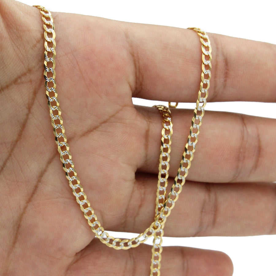 Nuevo diseño Popular superventas 14K sólido cubano bordillo Cadena de dos tonos con un collar con cierre de langosta seguro para hombres enlace cubano
