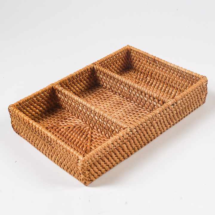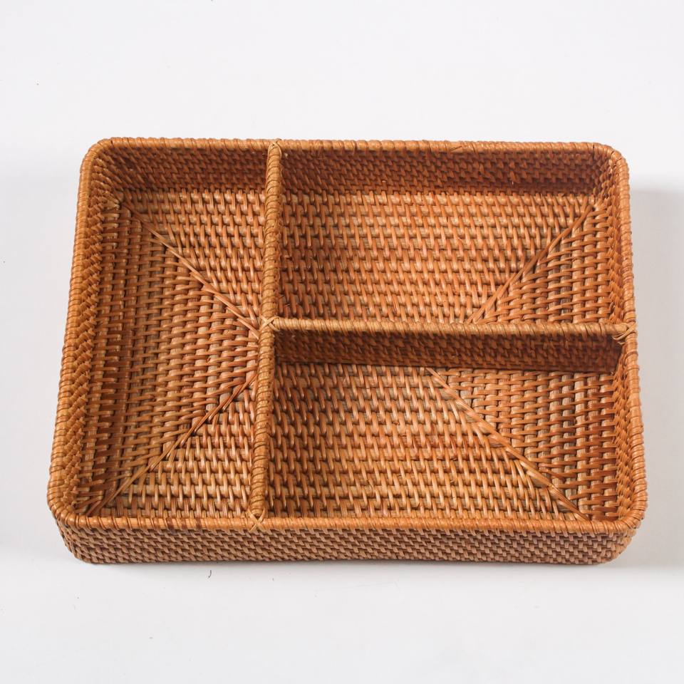 Bandeja con compartimento de ratán de nuevo diseño, organizador de utensilios, almacenamiento, cubiertos, cajón, bandejas organizadoras