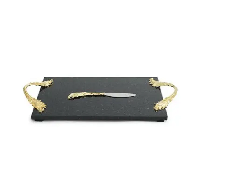 Tabla de quesos de mármol rectangular con cuchillo de latón de acero inoxidable y mango de bambú Nuevo diseño