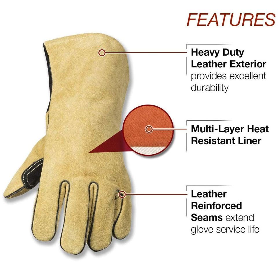 Guantes de Soldadura de Piel de Vacuno Reforzada de Nuevo Diseño, Resistentes al Calor y a las Chispas, para Bomberos, Barbacoa y Soldadores