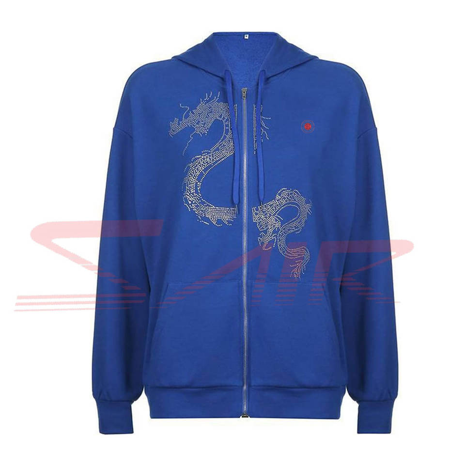 Sudadera con Capucha Unisex de Felpa Sólida con Logotipo Personalizado y Pedrería, 100% Algodón, Transpirable, con Cierre, Nueva Colección de Invierno para Hombre