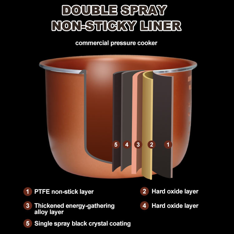 Preajuste del tiempo de cocción, LED pantalla, Interior de la olla con recubrimiento antiadherente, Protección contra sobrecalentamiento, Dispositivo de liberación de presión, Ajustable de ajuste de presiónFunción