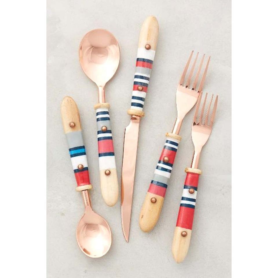 Juego de cubiertos de cobre de lujo chapado en oro rosa de nuevo diseño con mango único Juego de Cubiertos de alta calidad para restaurante Boda Hogar
