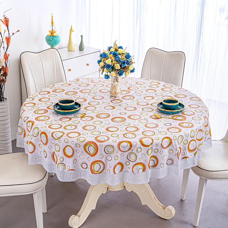 Nuevo diseño redondo PVC plástico poliéster manteles 130-220cm precio de fábrica para cocina cena tejido técnica