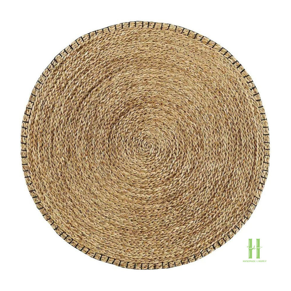 Alfombra de Entrada Artesanal Antideslizante de Fibra Natural con Diseño Rústico de Luna y Borde Festoneado