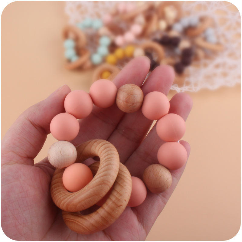 Cuentas de silicona de nuevo diseño, sin BPA, marco de cuentas masticable, anillo de madera de haya, pulsera de cuentas de silicona, producto de regalo, venta al por mayor