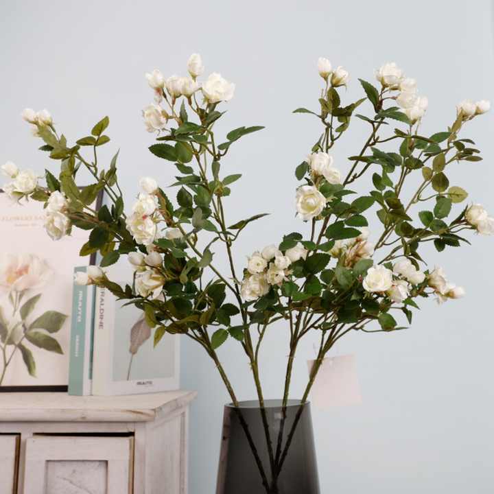 Rosas Artificiales de Seda de Nuevo Diseño, Flores Artificiales en Jarrón, Decoración de Mesa de Boda, Rama Individual con Múltiples Cabezas, Mini Rosa Ornamental para el Hogar