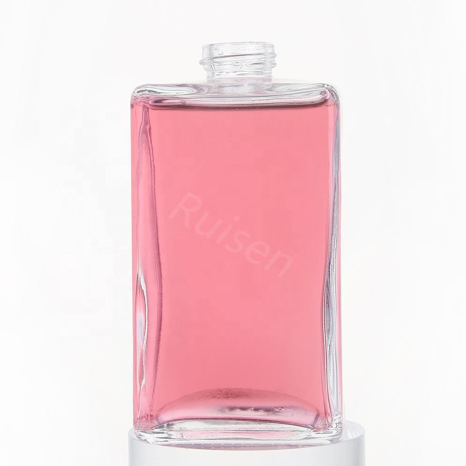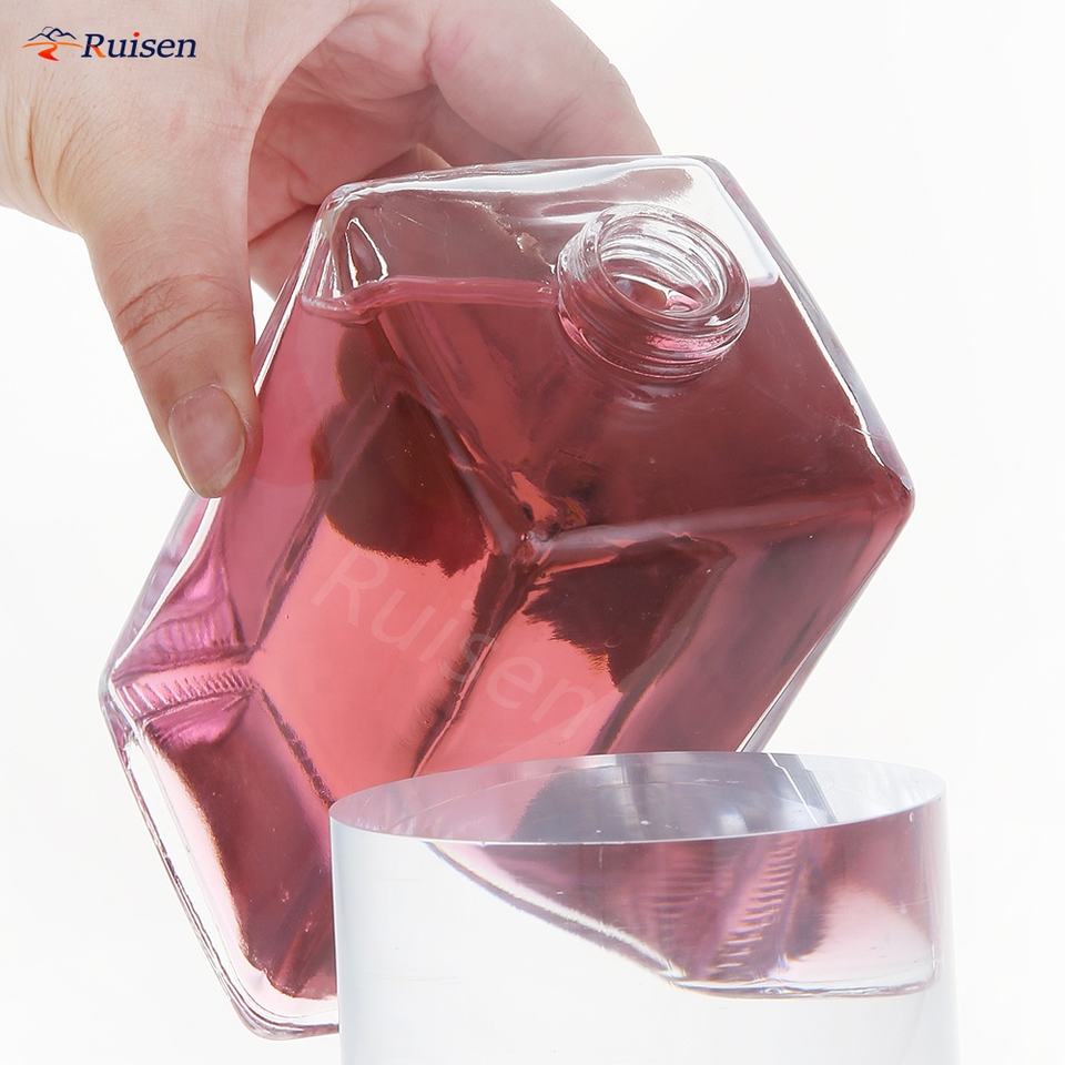 Botella de Vidrio Cuadrada Pequeña de Cuello Corto para Whisky y Vodka, Diseño Nuevo, Envase de Vidrio de Alta Gama para Brandy y Vodka, Botella Vacía Transparente