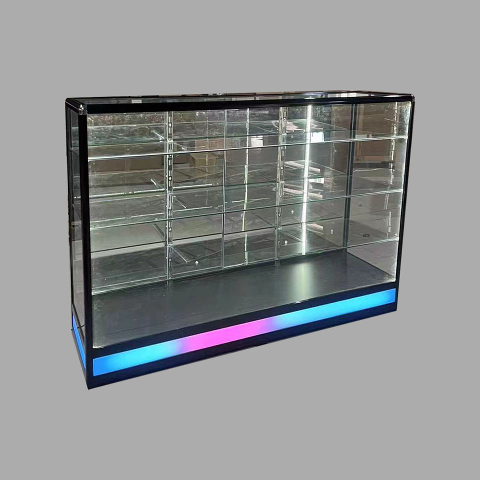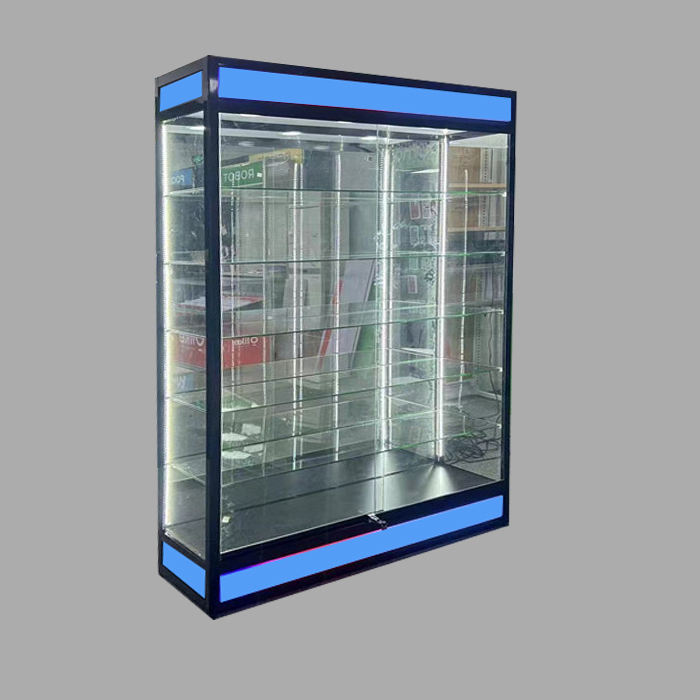 Nuevo diseño Smoke Store Case 5 estantes de vidrio Gabinete de pared Cristalería Exhibición Vitrina con luz de flash