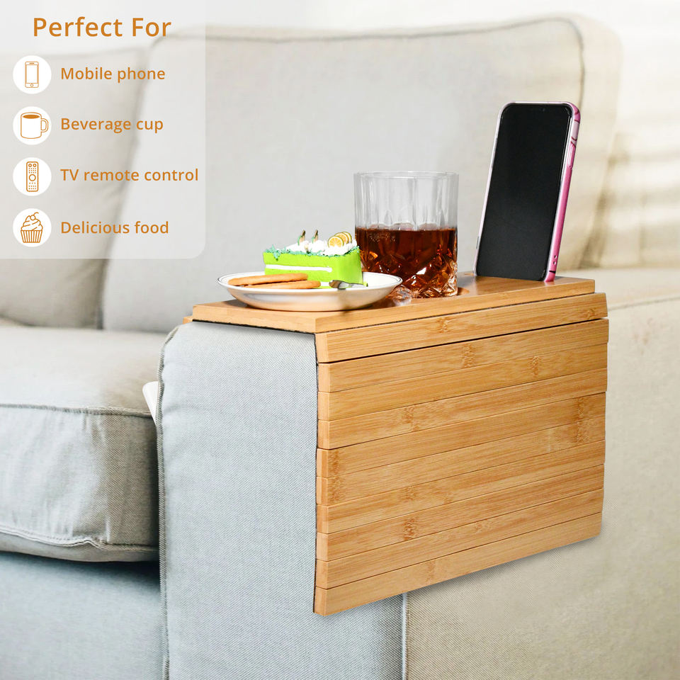 Mesa de bandeja de brazo de sofá de bambú sólido