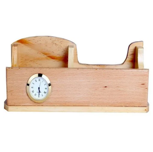 Portalápices de Madera con Diseño Cuadrado y Reloj, Decoración Única, Moderno y Lujoso, Venta al por Mayor