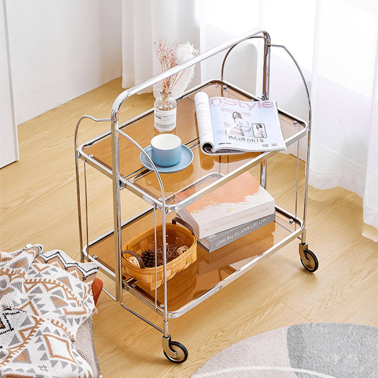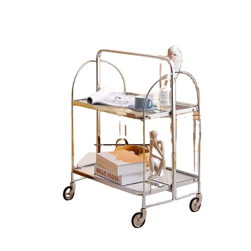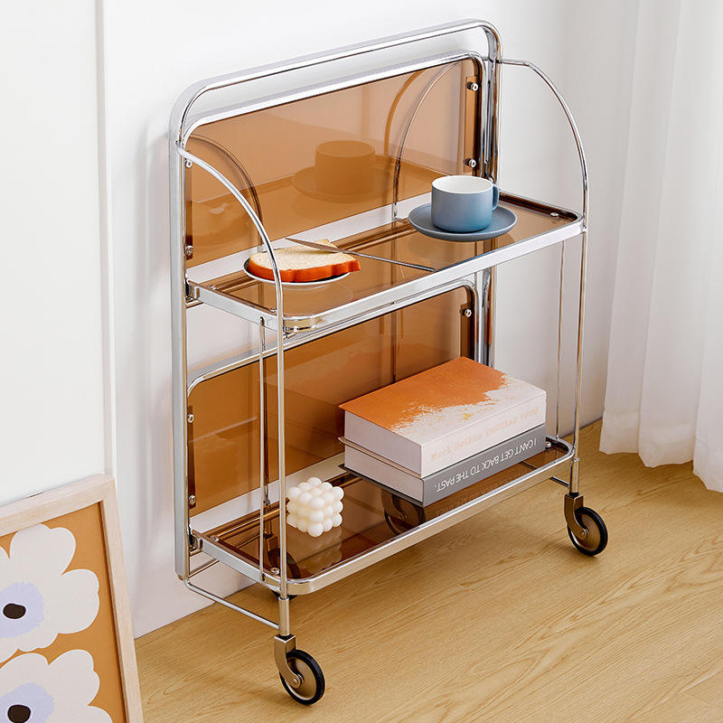 Soporte de almacenamiento móvil de acero inoxidable, carrito de servicio de fiesta plegable Vintage transparente, nuevo diseño