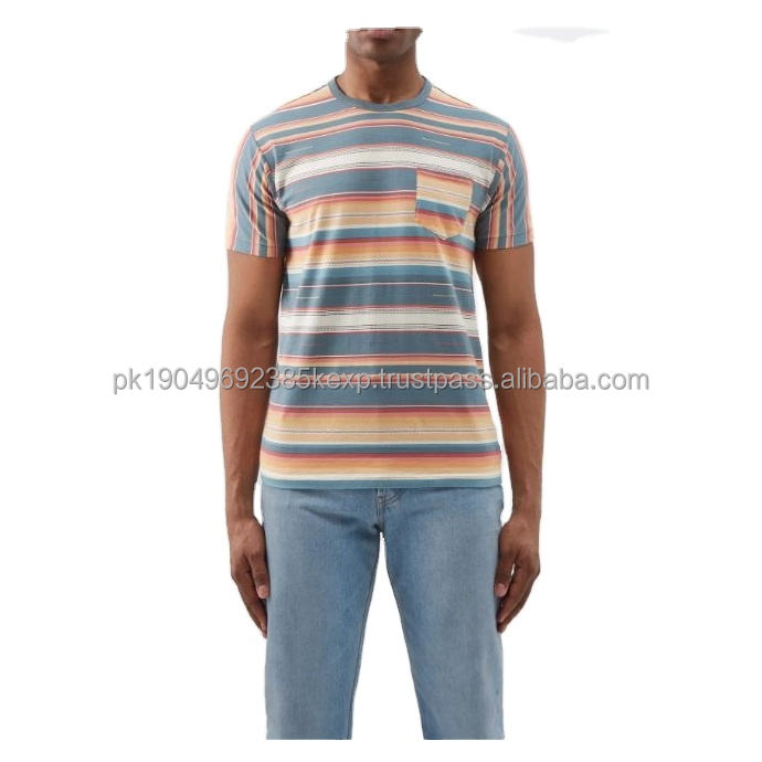 Camiseta de Hombre a Rayas de Nuevo Diseño, Cuello Redondo, Manga Corta, Cómoda, Novedad de 2023, Camiseta de Hombre con Estampado Personalizado