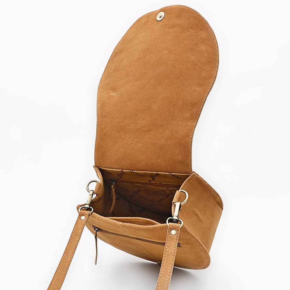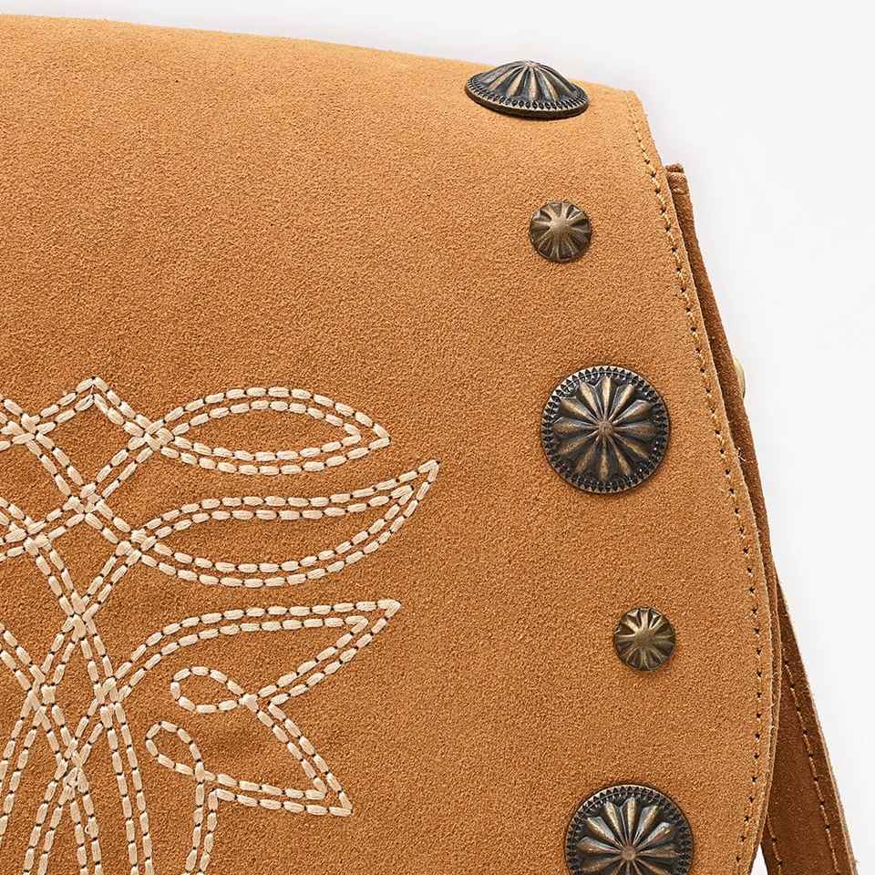 Nuevo diseño de cuero de gamuza Concho Sling Bag Bolso cruzado de cuero de gamuza Bolso de diseño cosido para botas a precio mayorista
