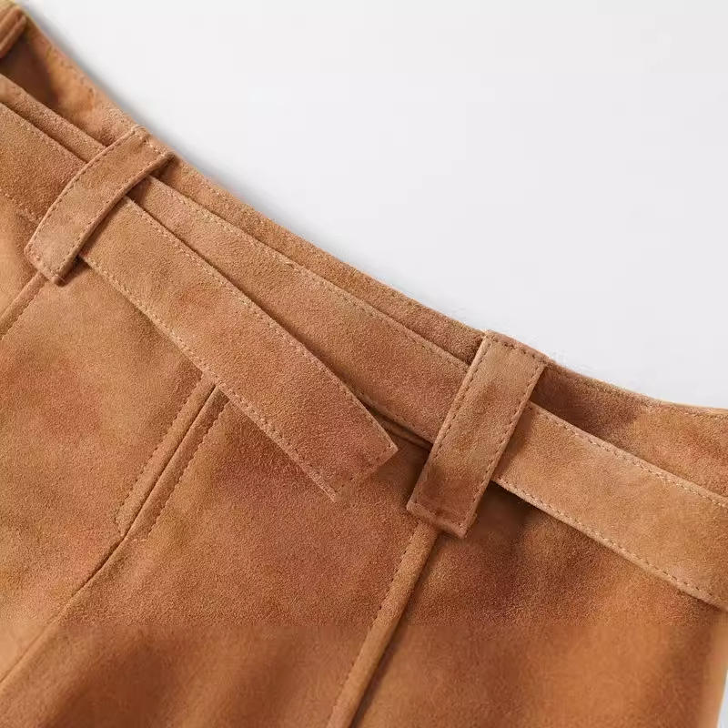 Mini Falda plisada de gamuza de cintura alta de verano de nuevo diseño para mujer con cinturón de Metal de cuero de piel de oveja estilo Streetwear