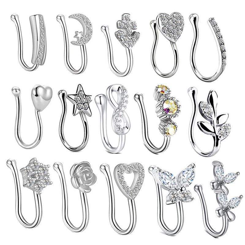 Anillo quirúrgico de acero para mujeres y niñas, Piercing falso para la Nariz, con Clip de corona, estrella, corazón, flor, para la Nariz