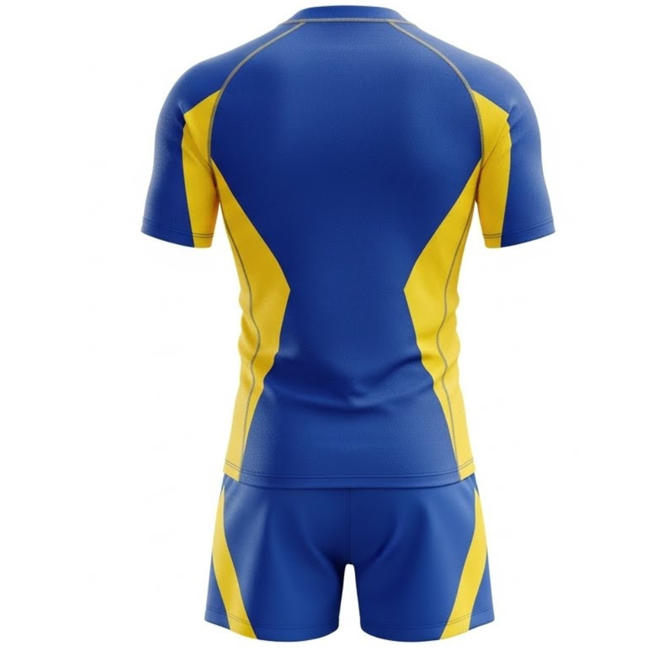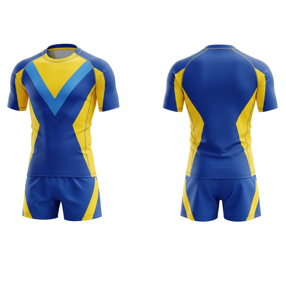 Uniforme de Rugby de Diseño Nuevo para Equipos - Uniforme Deportivo con Rayas Azules y Amarillas en Chevron