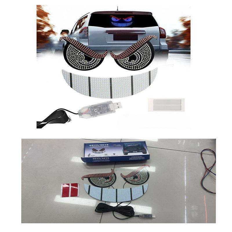 Nuevo Diseño de Luces LED Dinámicas USB para Parabrisas de Coche, Panel LED Matrix Universal para Ventana Trasera de Coche, Luces de Ojos de Diablo