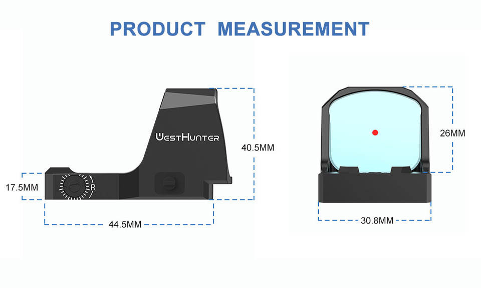 Nuevo Diseño WESTHUNTER PIONEER 1X26X23 Mira de Punto Rojo Compacta con Cristal HD, Retícula Reflexiva Activada por Movimiento y Visión Holográfica de Campo Amplio