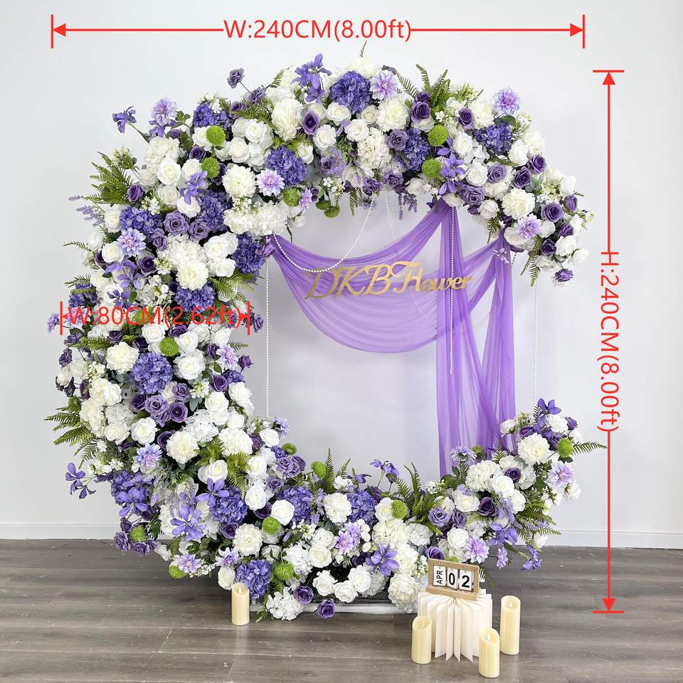 Nuevo diseño boda flor Luna en forma de arco alta simulación púrpura Rosa seda Artificial boda arco para boda telón de fondo Decoración