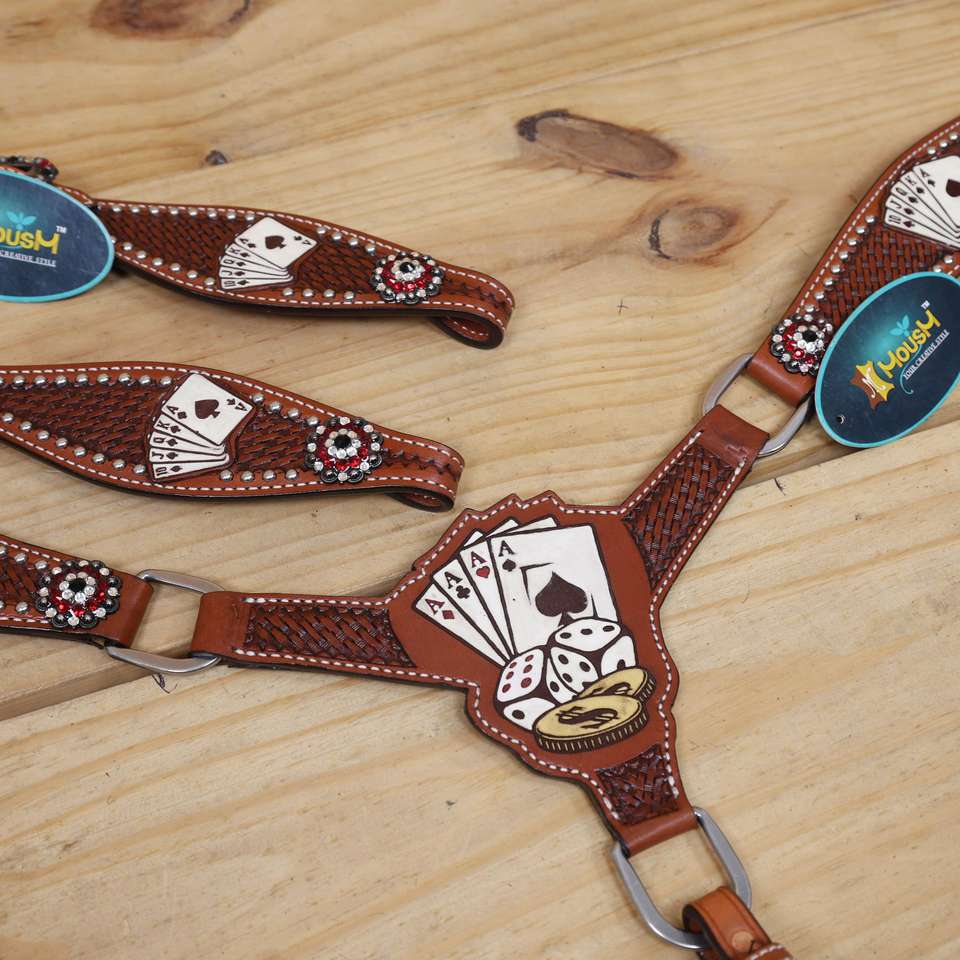 Nuevo Diseño de Conjunto de Arreos Western para Equitación, Mejor Precio, Cabezada de Cuero, Pechera y Correa de Sujeción Talladas para Equitación