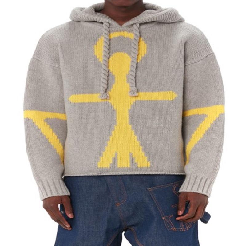 Nuevo diseño, venta al por mayor, 100%, suéter de lana para hombre, suéteres con capucha estampados de manga larga de alta calidad para hombre