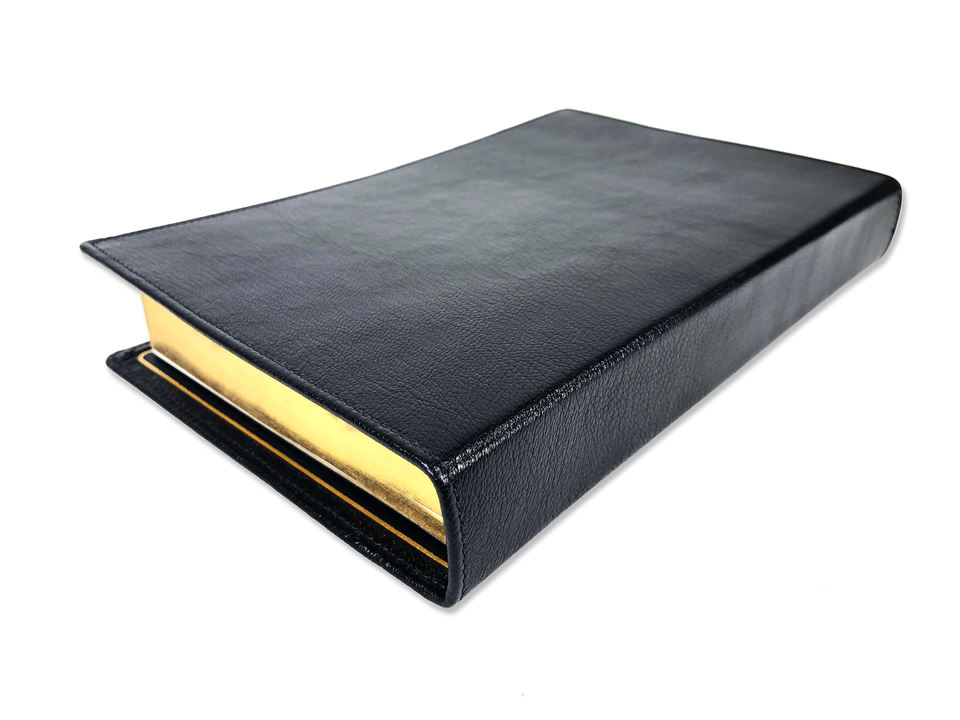Venta al por mayor de Encuadernación perfecta personalizada en relieve PU Tapa dura Libro de La Santa Biblia con cinta negra nuevo diseño OEM fabricante exportador