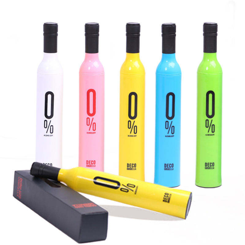 Nuevo diseño al por mayor logotipo personalizado forma impresa regalo publicidad marca paraguas botella de vino paraguas