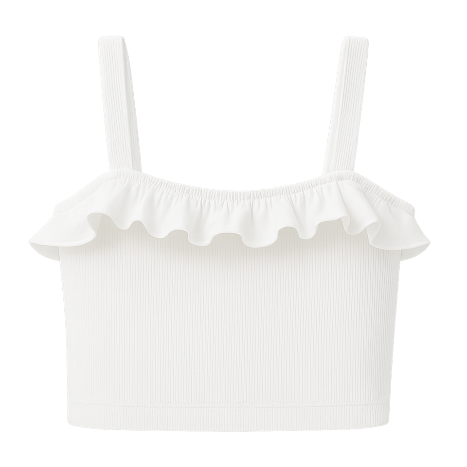 Número de Modelo:RIBBED KNIT CROP TOP WITH RUFFLE TRIM