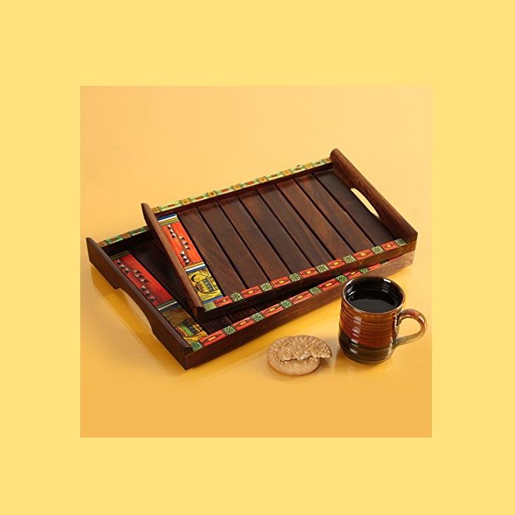 Bandeja de madera con esmalte impreso para decoración del hogar, bandeja de servicio de madera para cocina y restaurante, nuevo diseño
