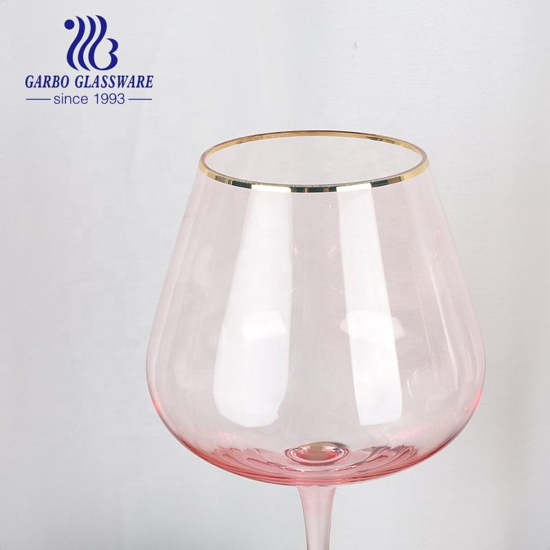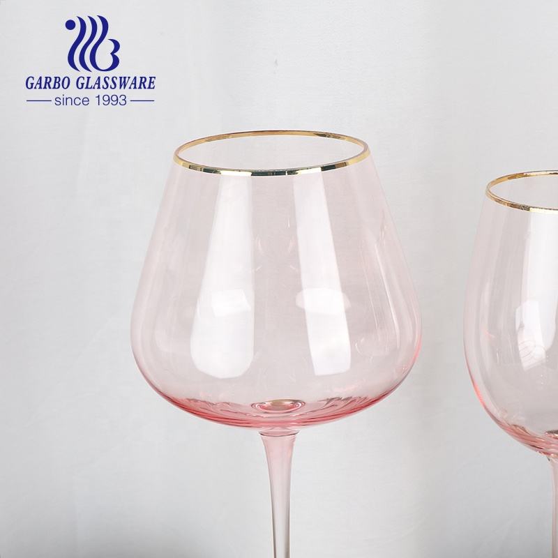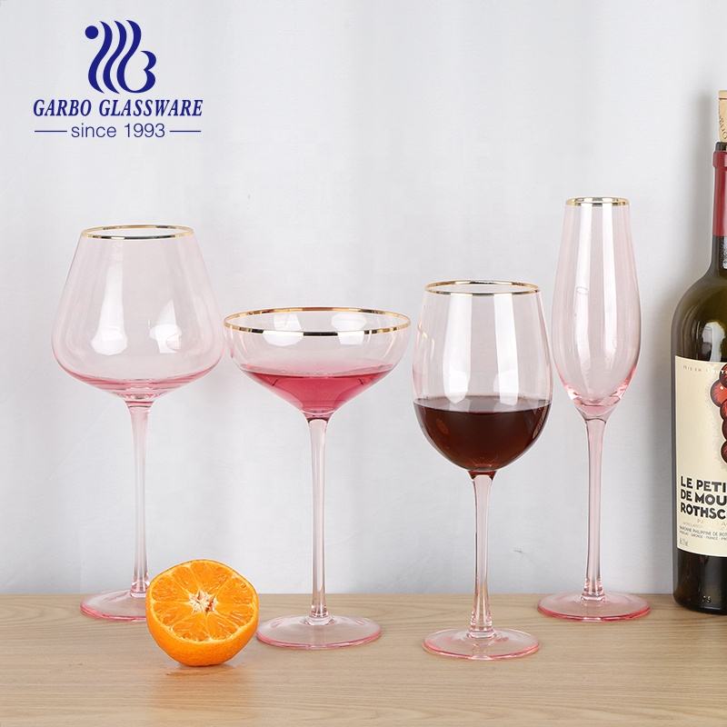 Copa de cristal sólido de color rosa con borde dorado para beber vino, copas de vidrio usadas para fiesta de champán, nuevo diseño