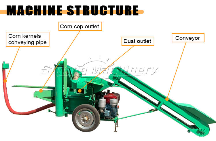 Nuevo diseño con transportador plegable, desgranadora de maíz en Perú, trilladora de maíz pequeña para maíz