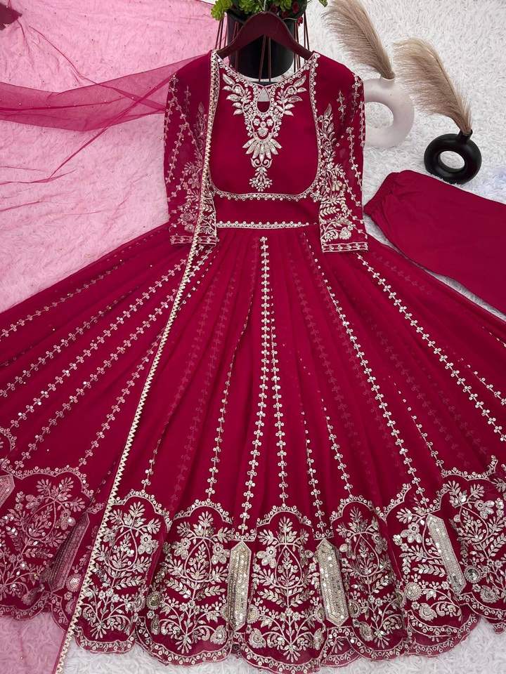 Nueva colección de diseñadores Faux Georgette Full Heavy Sequence Bordado Vestido de trabajo y parte inferior con Dupatta a precio mayorista
