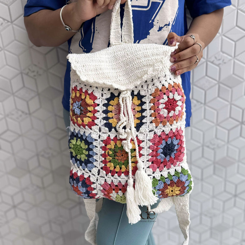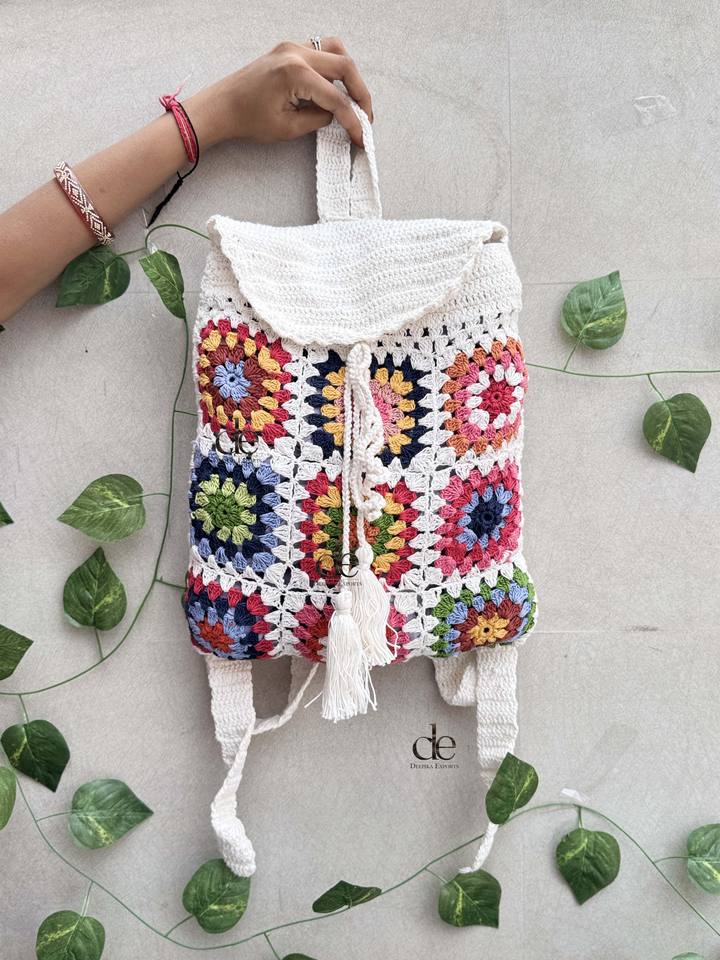 Nueva mochila de ganchillo de diseñador Mochila elegante hecha a mano Vintage Boho Multi Usos Venta caliente Hermosa bolsa de usos de diseñador para niñas