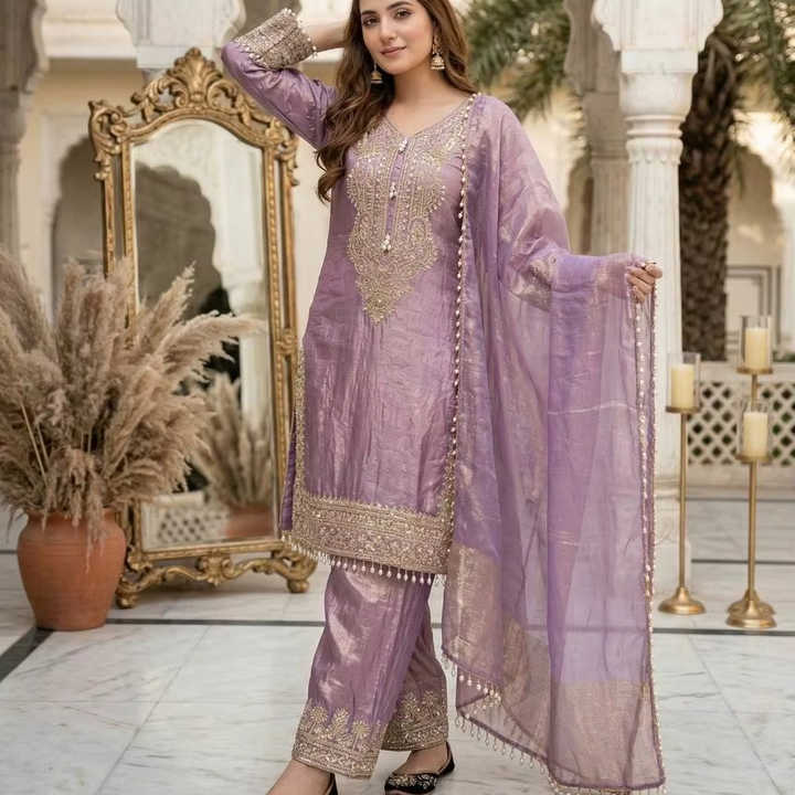 Nuevo Conjunto de Diseño con Bordado y Secuencia de Codificación, con Top Elegante, Pantalones Palazzo y Dupatta