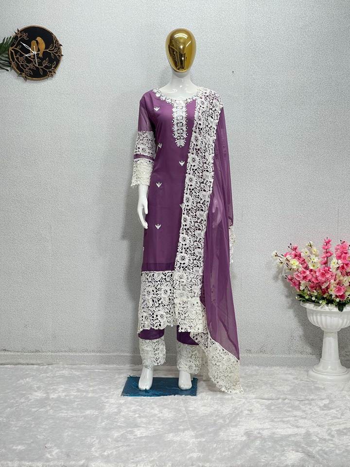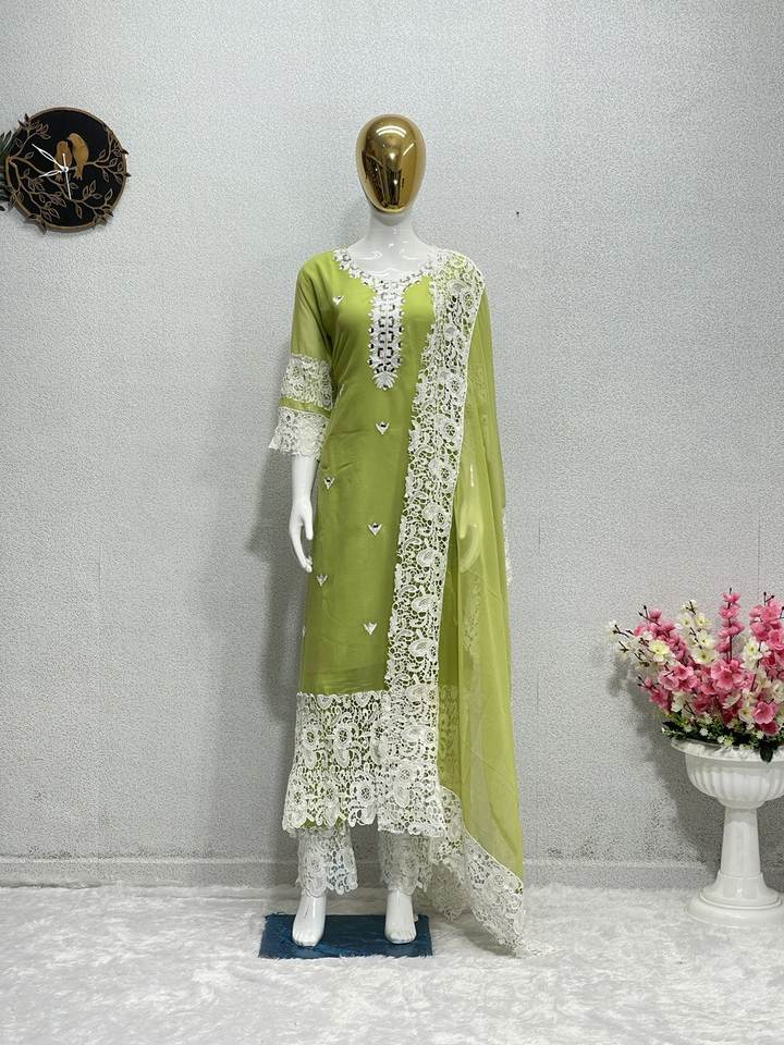Nuevo Sari de Diseño Pesado con Costuras Chinas en Falsa Georgette con Top Estampado y Dupatta KURTI-SET para Uso Casual de FABZONE