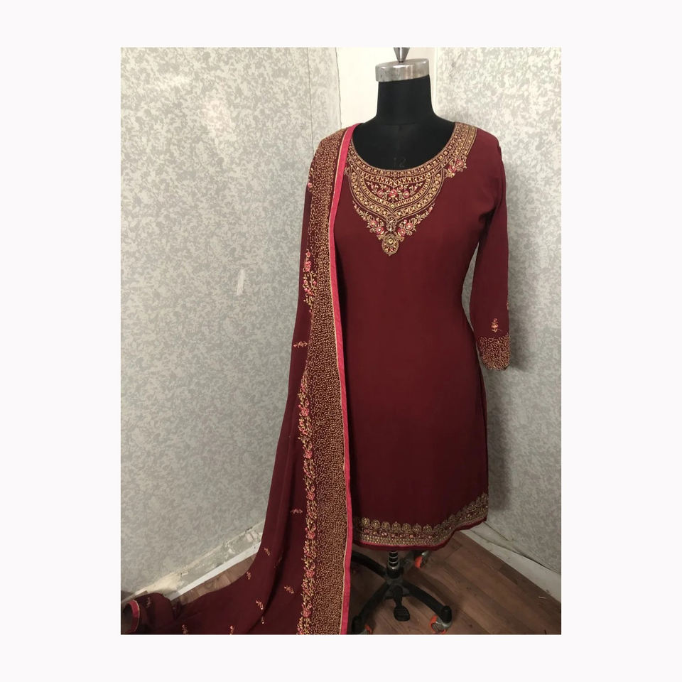 Vestido de trabajo de secuencia de bordado pesado de nuevo diseñador Dupatta ropa de lujo tradicional para adultos hecha de aspecto de fiesta de seda