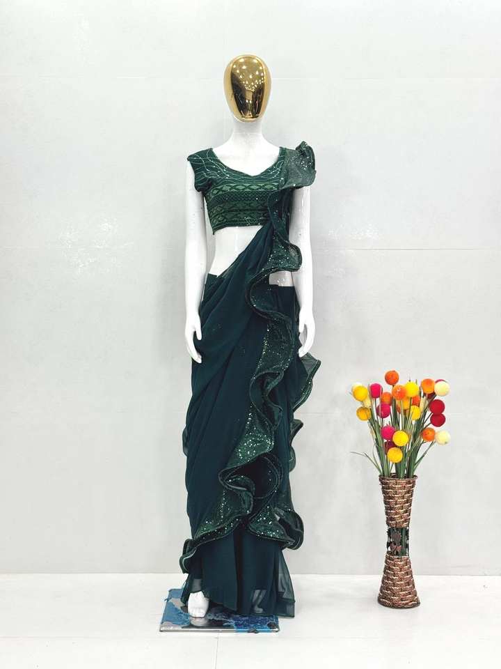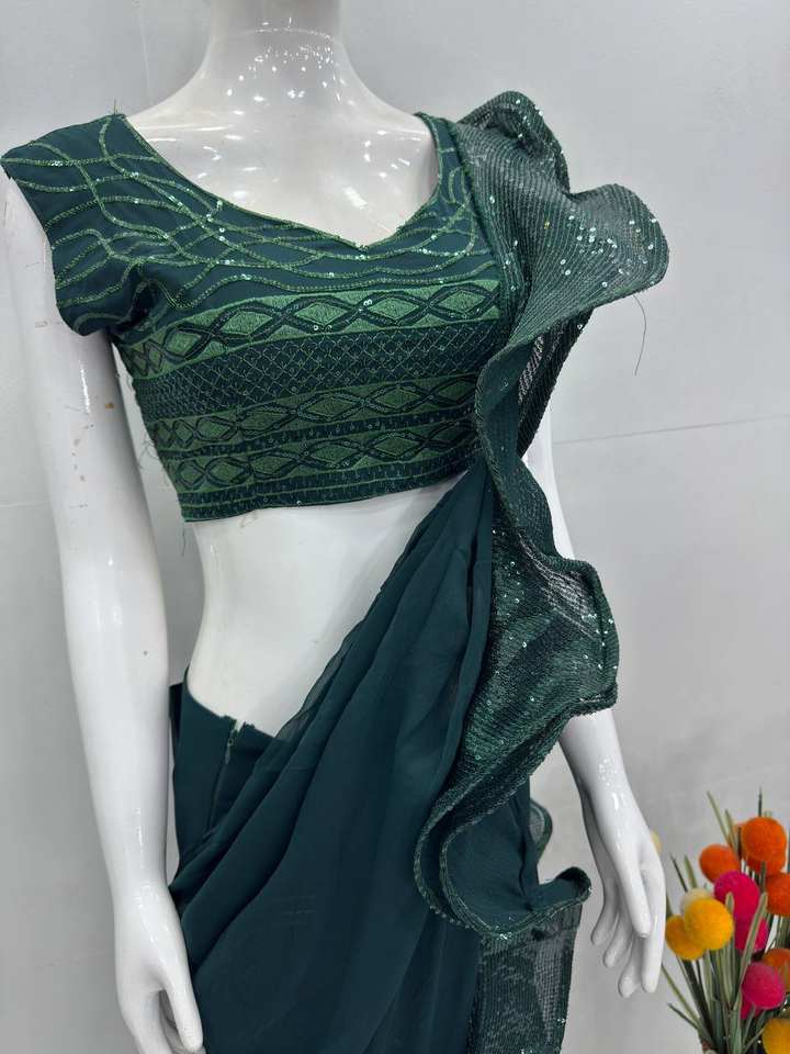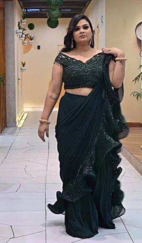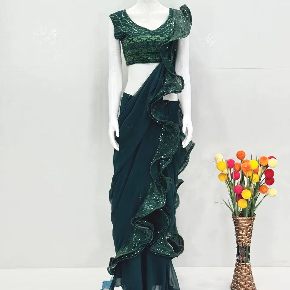 Nuevo Saree de Diseñador con Volantes de Georgette de Alta Calidad, Listo para Usar