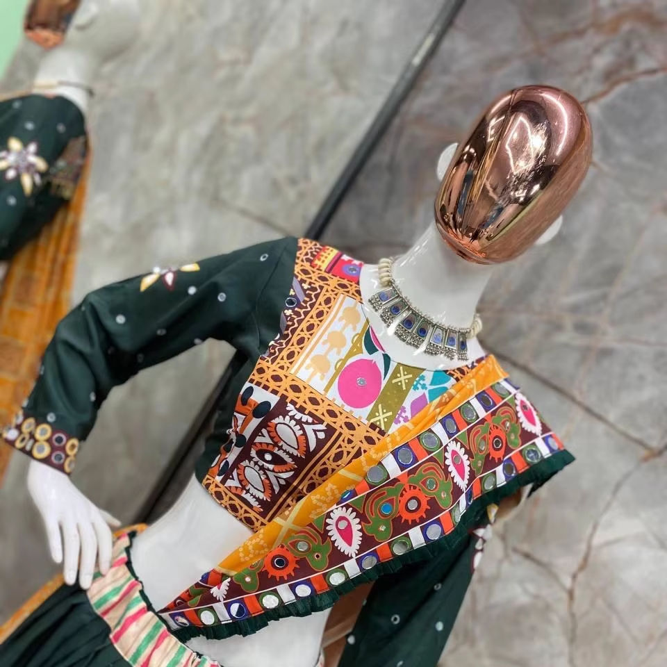 Nombre del producto:Impresión y bordado espejo real trabajo Lehenga Choli Dupatta