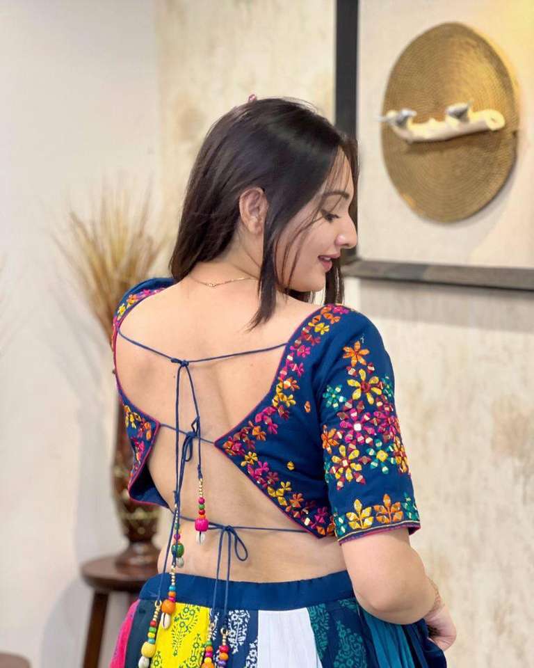 Nombre del producto:Impresión de algodón de muselina y trabajo de espejo real Lehenga Choli Dupatta