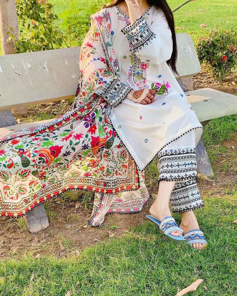 Nombre del producto:Muselina de hilo de algodón y Zari bordado trabajo Top y pantalón con Dupatta