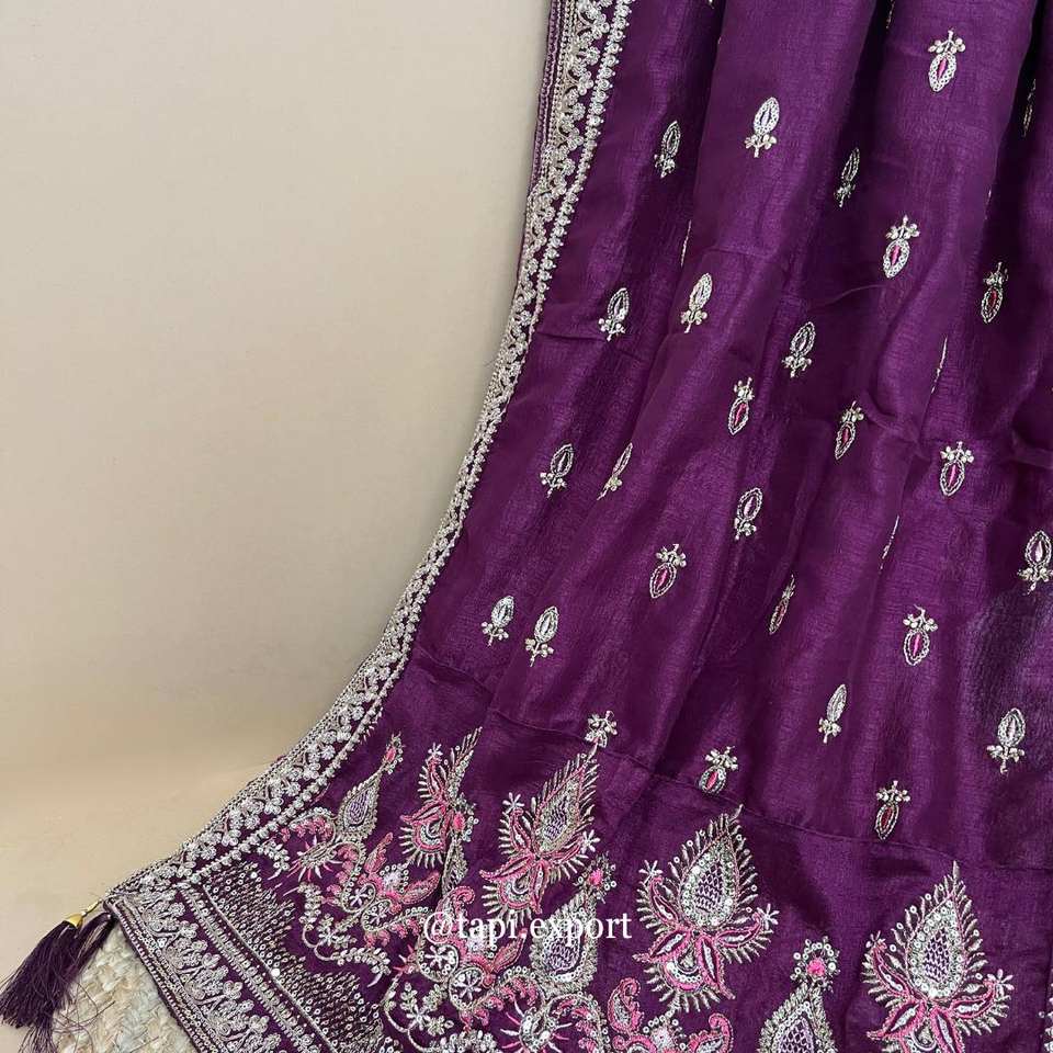 Nueva colección de primavera de diseñador bordado Jari Work Fancy Dupatta para chales de fiesta