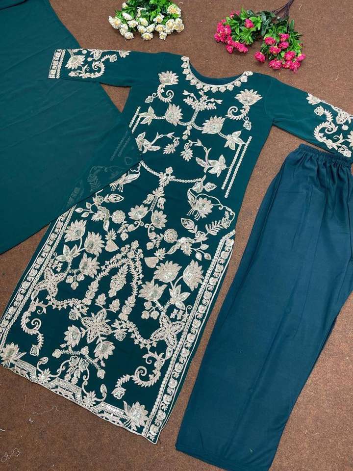 Nuevo diseñador de hilo bordado de buena calidad impreso Georgette Top y pantalón con Dupatta Outfit Heavy Georgette con estilo completo