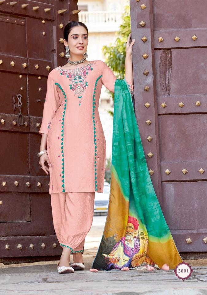 Nuevo diseñador de tejido de viscosa con trabajo hecho a mano y bordado con Mus-line Print Kurtis set para la venta en línea