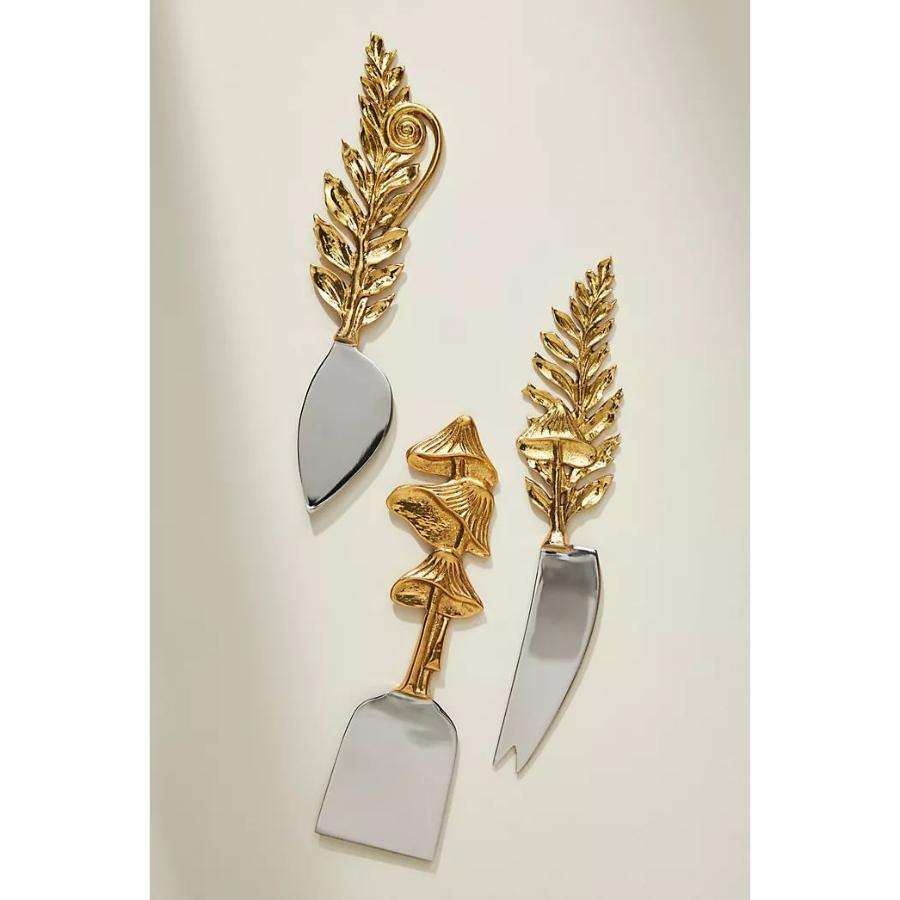 Nuevo juego de queso de metal de diseño en acabado plateado con mango dorado para corte de mantequilla y uso en la cocina