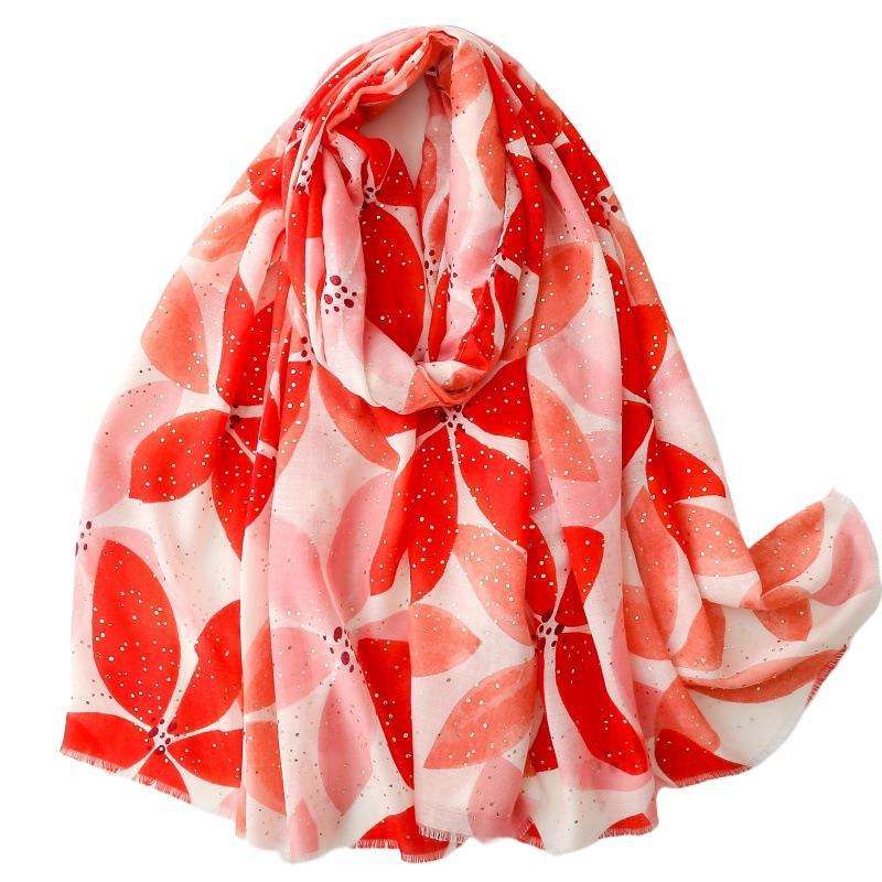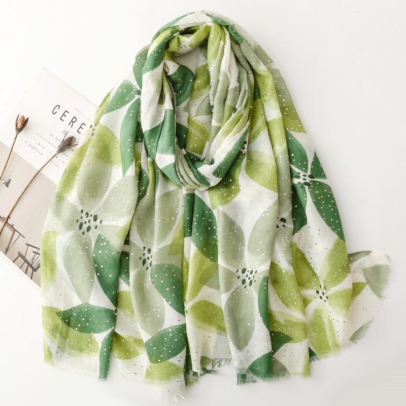 Nuevos diseños de chales estampados florales, lámina dorada de poliéster, estola personalizada de alta calidad, bufanda grande para mujer, funda de playa, Foulard