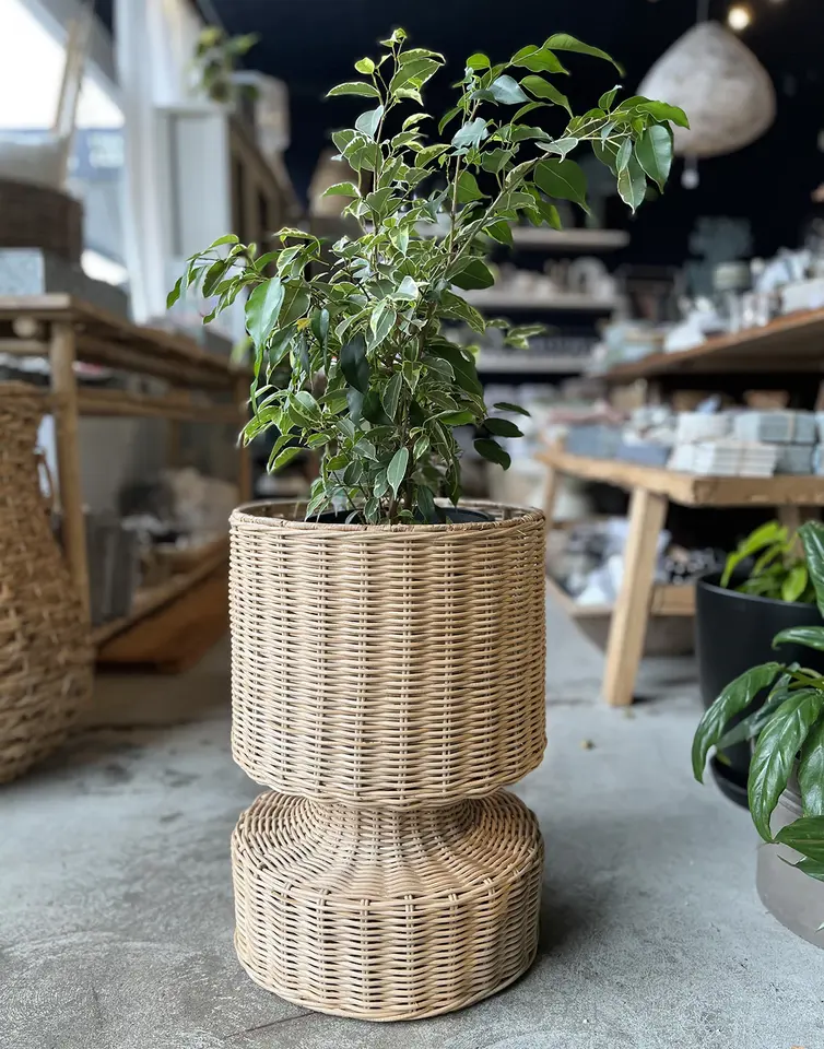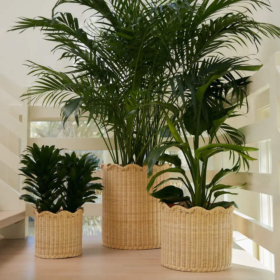 Maceta de flores de ratán Natural de nuevos diseños para decoración de habitaciones macetas y macetas festoneadas maceta de ratán personalizada en Vi