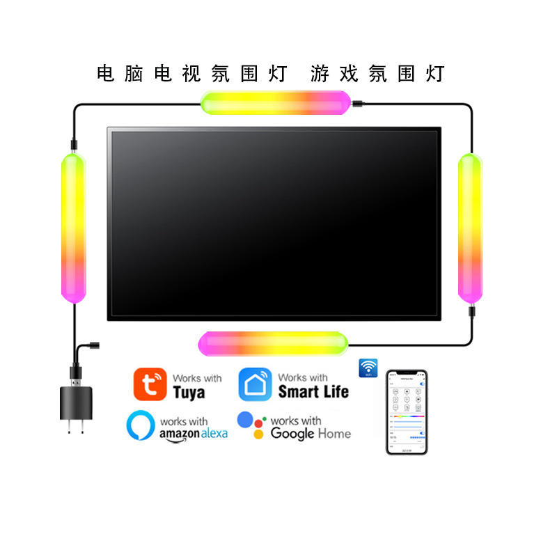 Nuevo escritorio Smart Phantom TV atmósfera RGB brillo música Control de voz lámpara poste juego de ordenador Luz de recogida