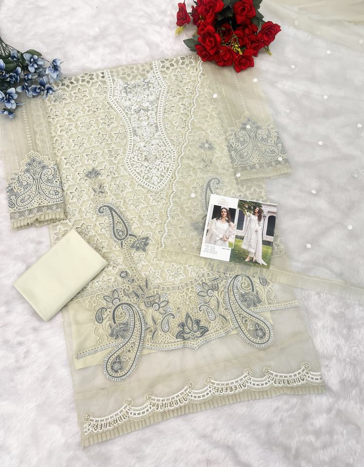 Nuevo Dhwaja Export Multi Color Diseñador paquistaní Formal Traje sin costuras Colección Organza Bordado Secuencia Corte Trabajo Moti