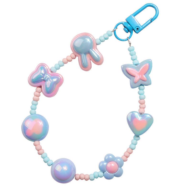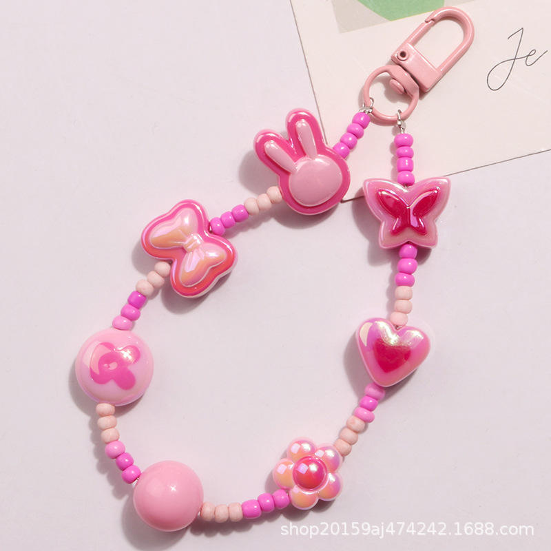 Nuevo llavero con lazo Chapado en Color estilo dopamina, colgante colorido con cuentas, accesorio de cadena, funda para auriculares, decoración